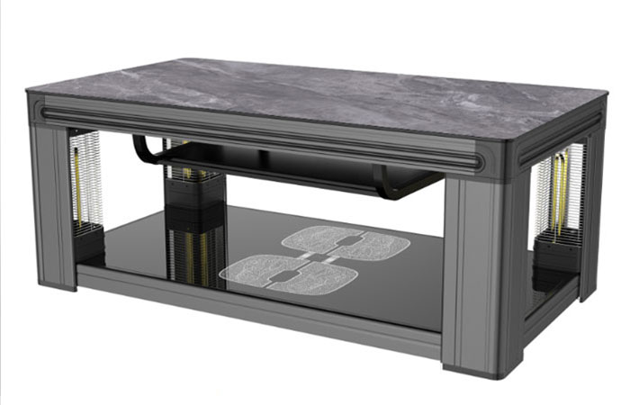 岩板、底玻同色、脉冲理疗、隐形电磁炉、智能语音、镀金管发热、翻转屏、童锁、5小时自动待机(可自由设定)、智能温控保护、收纳电源线、USB插口、中层置物,单控