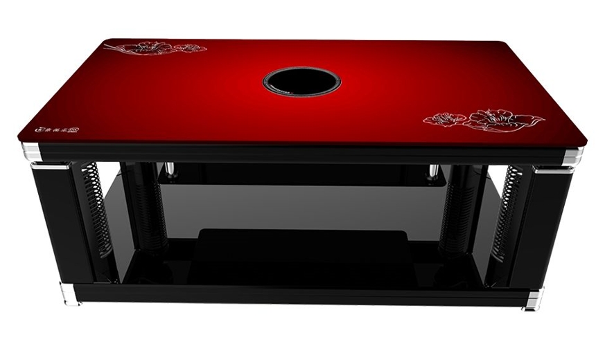 • 聚福龙\乐福升降茶几\TS18\渐变红金花面板\磨砂黑\1380 零售价:2399元