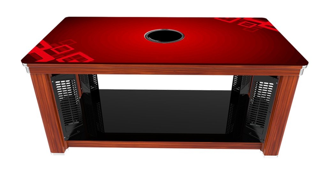 聚福龙\源福茶几\TF18A\几何渐变红面板\金橡木纹\1400 零售价:1780元